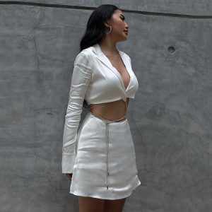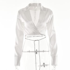 Autumn and winter hot style hot girl slim-fitting rose satin high-waisted lace-up short skirt long-sleeved cardigan two-piece set for women […]