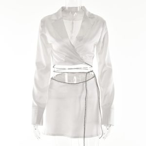 Autumn and winter hot style hot girl slim-fitting rose satin high-waisted lace-up short skirt long-sleeved cardigan two-piece set for women