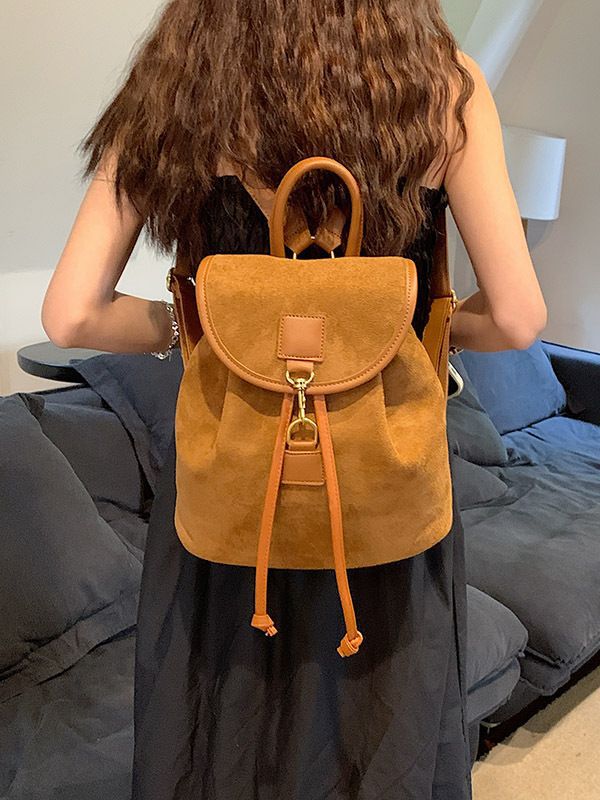 Autumn new imitation suede backpack for women, large capacity, fashionable and popular commuting small backpack, American retro crossbody bag